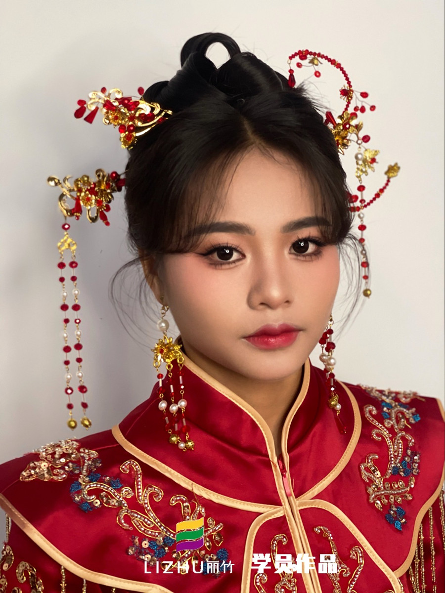 零基礎(chǔ)新娘培訓(xùn)教學(xué)(麗竹彩妝培訓(xùn)學(xué)校)學(xué)員作品---新中式秀禾新娘