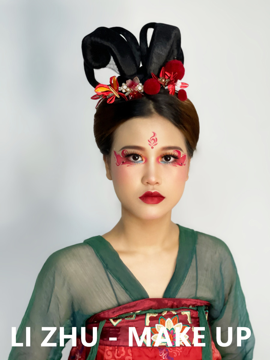 廣西古風造型寫真、廣西彩妝造型作品---古風造型:妝面精致粉嫩,眼妝濃迷人郁,唇色鮮艷甜美,氣質(zhì)溫婉如水,散發(fā)出一種迷人的魅力。想在廣西化妝寫真培訓、想在廣西彩妝造型進修,歡迎到廣西專業(yè)造型學校(麗竹造型學校)參觀試聽。