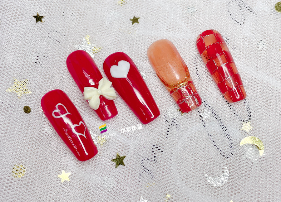 新年紅色美甲,廣西學(xué)美甲款式