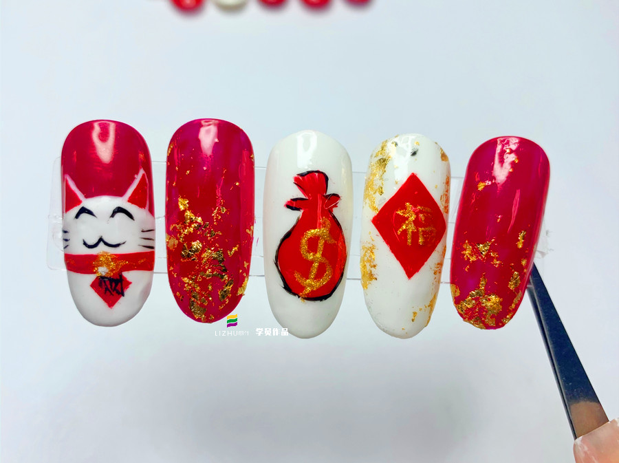 從零開(kāi)始學(xué)美甲、廣西美甲學(xué)徒:用喜慶的紅色和金色相互搭配,滿滿的吉祥喜氣,招財(cái)進(jìn)寶之意撲面而來(lái)。如果你也想繪制招財(cái)貓美甲,不如就跟著廣西專業(yè)正規(guī)美甲學(xué)校(麗竹美甲培訓(xùn))的同學(xué)們一起學(xué)習(xí)下新年招財(cái)貓美甲教程吧!