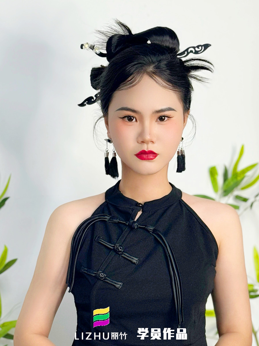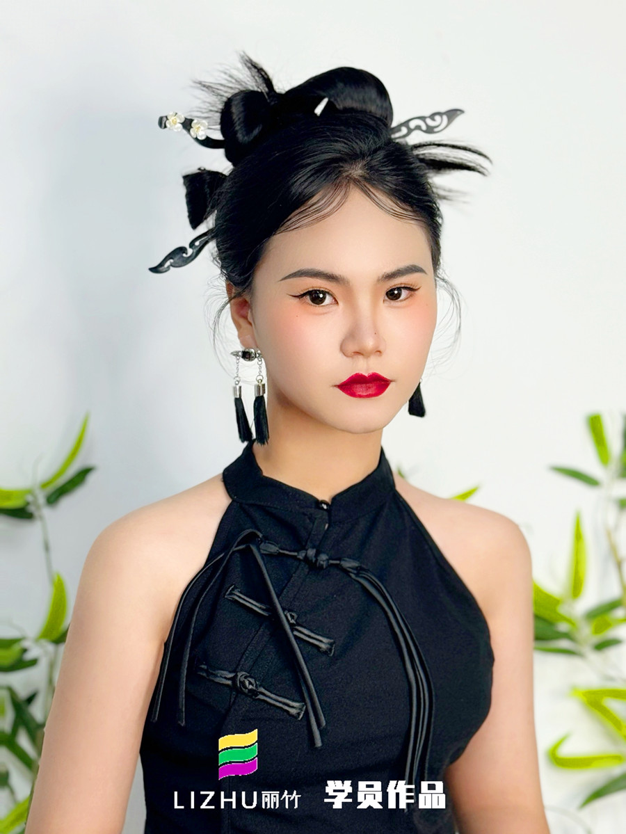 零基礎(chǔ)彩妝教學(xué) 南寧影樓彩妝培訓(xùn)學(xué)員(梁雅露)作品---新中式造型。如果你本就對化妝感興趣,或是想提升技術(shù),建議你可以趁著南寧化妝彩妝培訓(xùn)機(jī)構(gòu)-南寧彩妝寫真學(xué)校(麗竹彩妝寫真學(xué)校)真在進(jìn)行招生優(yōu)惠活動,聯(lián)系我們報名吧!