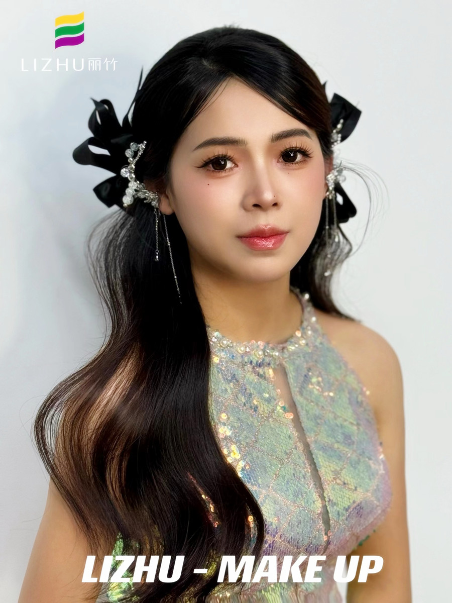 廣西化妝造型培訓、廣西化妝彩妝(麗竹化妝造型培訓)作品:禮服造型:自然清透的甜美妝容,蝴蝶結夾耳韓式披發(fā),七彩色彩的亮片禮服,猶如人魚公主般夢幻。如果你只想學習一些日常用到的化妝手法,建議你可以關注廣西化妝形象學校-廣西化妝短期培訓班推出的《個人形象化妝班》的課程哦!