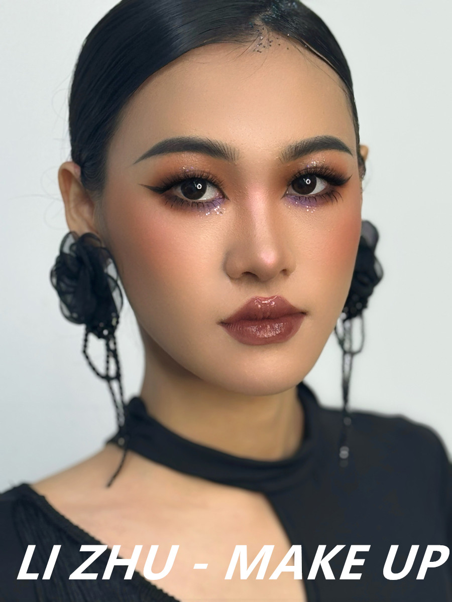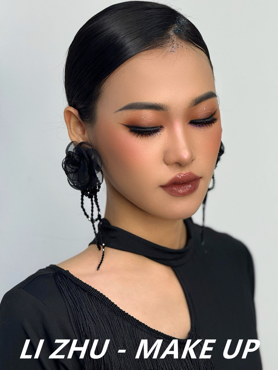 南寧學(xué)美妝、南寧美妝培訓(xùn)排行榜:選擇深一號(hào)的粉底進(jìn)行底妝創(chuàng)作,進(jìn)而打造出陽(yáng)光小麥的健康膚色。細(xì)致描繪的輕度煙熏眼妝,配上時(shí)下流行的“豬肝配豆沙”的唇妝,以及自然清秀的眉形設(shè)計(jì),外加網(wǎng)紗黑色花朵耳環(huán)以及黑色禮服裙的裝飾,共同打造出了屬于東方性感美的輕歐美造型。